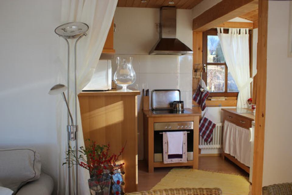 Kaminofen (Holz steht immer zur Verfügung) – Essbereich für vier/fünf Personen – ausreichend Geschirr und Gläser – Flachbildfernseher mit DVD, Stereoanlage, verschiedene DVDs und CDs – gut ausgestattete, helle Küche mit Backofen und Cerankochfeld, Mikrowelle, Spülmaschine, Kühlschrank, Kaffeeautomat, Wasserkocher, Mixer u.v.m. – Fondue-/Raclettegerät auf Wunsch.