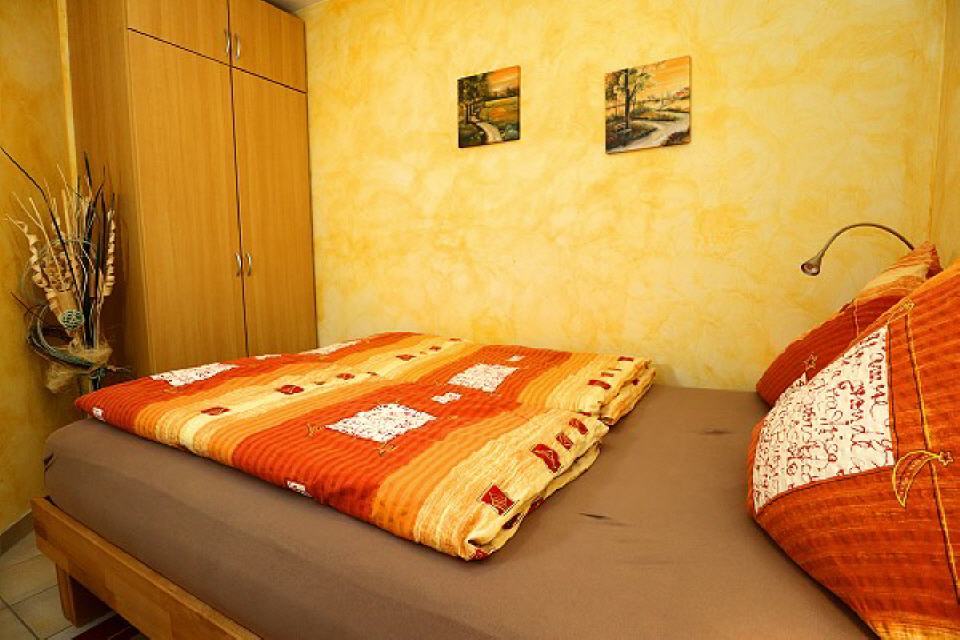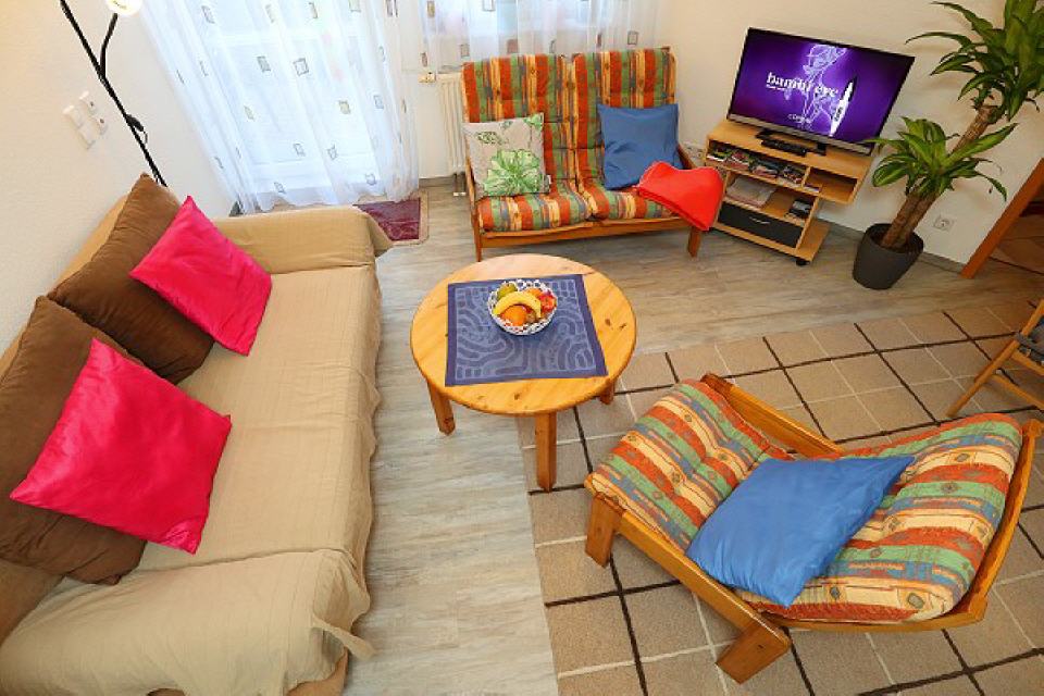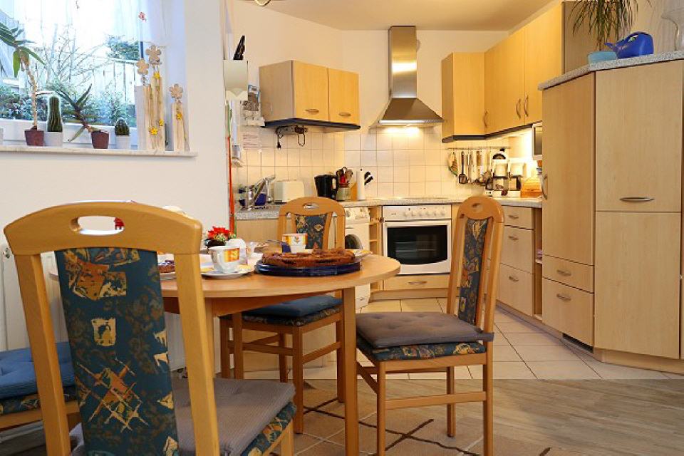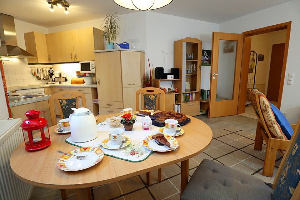 Die Ferienwohnung bietet auf 70 qm genügend Platz für Ihre Familie; sie verfügt über einen eigenen Eingang. Das Schlafzimmer ist modern möbeliert. Die Betten verfügen über einen am Kopf- und Fußteil höhenverstellbaren Lattenrost. Kinderbett ist vorhanden. Der Wohnbereich ist sehr gemütlich ausgestattet und bietet: Sat-TV, Radio, Sitzgruppe, Schlafsofa und eine Essecke mit Stühlen. Modern, bestens ausgestattet und zweckmäßig ist auch die Kücheneinrichtung mit Geschirrspühler, Mikrowelle, Ceran-Kochfeld, Backofen und Grill.
