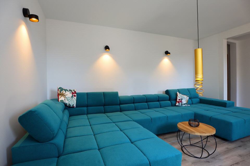 Wir haben bei der Sanierung und Einrichtung der Ferienwohnung BohoAmSee bewusst auf einen pseudo-Schwarzwaldstuben-Chic verzichtet und Lebensräume geschafen, die durch Individualität, lebensfrohe Farben und Kunst ein unvergleichliches Ambiente bieten. So wird in der vollausgestatteten Designerküche ein gemeinsamer und bgeselliger Koch-Event zu einem unvergesslichen kulinarischen Ereignis und die gemütliche Wohnlandschaft mit über 4 Meter Länge inspiriert zu interessanten Gesprächen oder animiert, mal ganz entspannt ein Buch zu lesen, einen spannenden Movie mit dem 55" LED Smart-TV anzuschauen oder seine Lieblingsmusik auf dem BoseSoundsystem anzuhörenb.