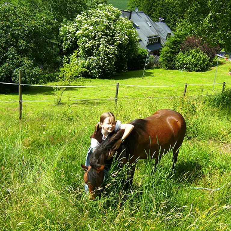 Ein Sandkasten und Spielgeräte für die ganz Kleinen sind ebenso vorhanden. Desweiteren gibt es ein Trampolin, eine Seilbahn, Tischtennisplatte und vieles, vieles mehr. Klar, bei uns gibt es auch Tiere. Und die freuen sich auf die jungen Gäste. Die beiden Hausschafe Pünktchen und Jean-Cloude lieben nämlich die Gesellschaft.
