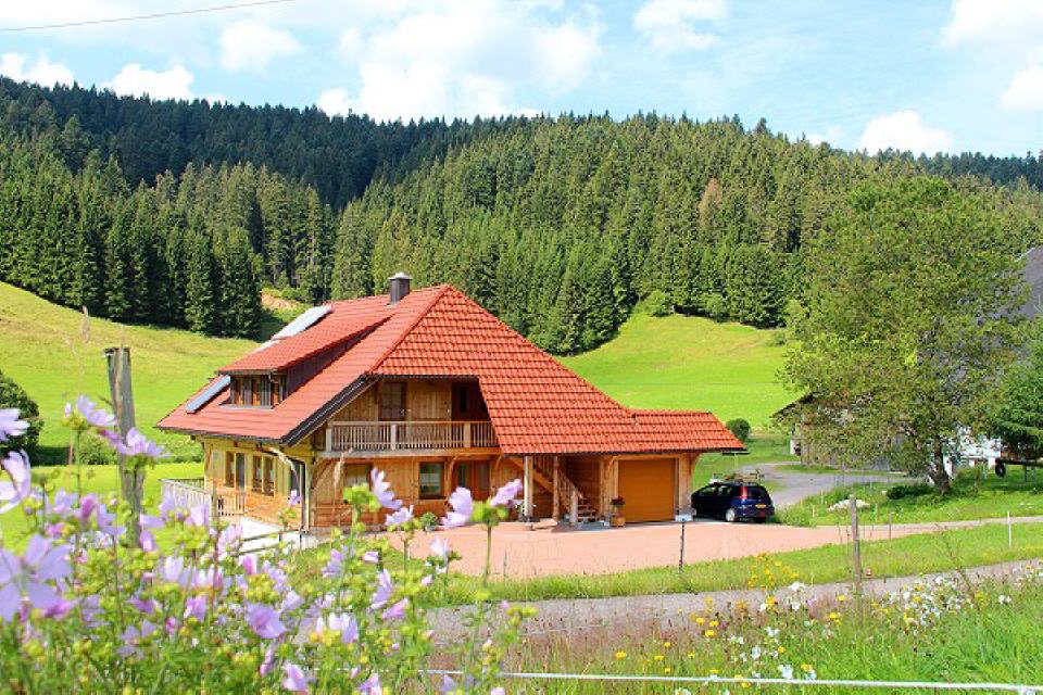 Das Ferienhäusle steht unmittelbar am historischen Bauernhof. Es wurde mit Holz aus dem eigenen Wald gebaut. Die Stämme wurden vor Weihnachten in bester Mondphase bei abnehmendem Mond – mit der Sichel nach unten – gefällt, so wie es schon die Schwarzwälder in früheren Zeiten machten. In dieser Zeit ist das Holz besonders trocken und bietet den besten Schutz. Eine chemische Behandlung ist nicht nötig. Verputzt wurden die Innenwände mit Lehm. Das schafft ein gesundes Raumklima; damit sind die Ferienwohnungen für Allergiker besonders verträglich.