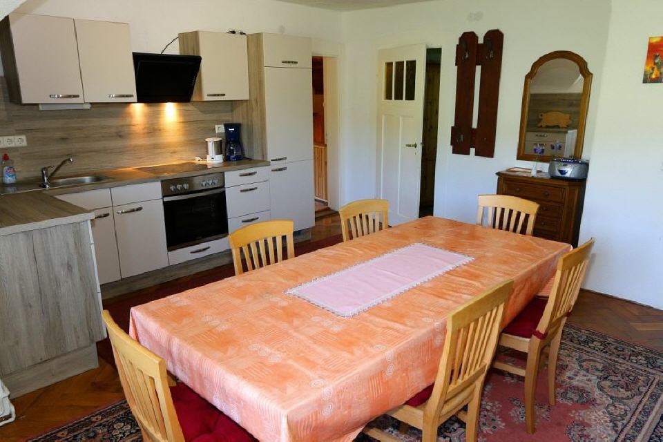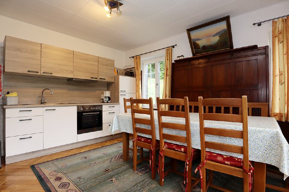 Küchenbereich mit großem Esstisch