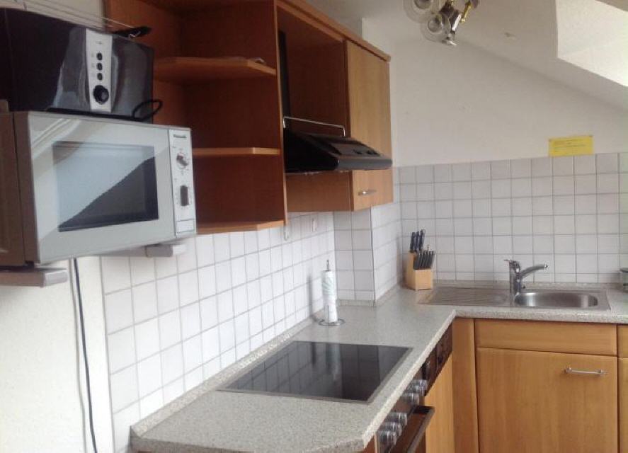 - Küche: Mikrowelle, Eierkocher, Wasserkocher, Spülmaschine, E-Herd mit Cerankochfeld, Kaffeemaschine, Backofen, Geschirr, Töpfe etc., Toaster, Dunstabzugshaube, SENSEO Kaffeepadmaschine, Handmixer, Kühlschrank mit Gefrierfach