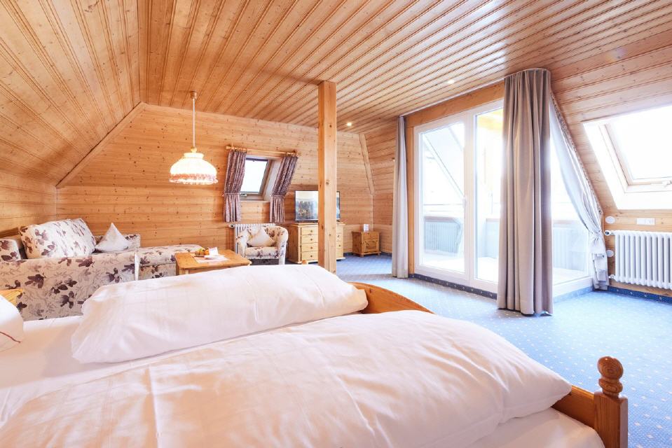 - Großzügige Dachstudios Stammhaus: mind. 46 qm, gemütlich in der Dachschräge gelegen, großzügige Couchecke, teilweise mit zusätzlicher Eckbank, Badewanne und Dusche, Loggia mit Panormablick ins Tal