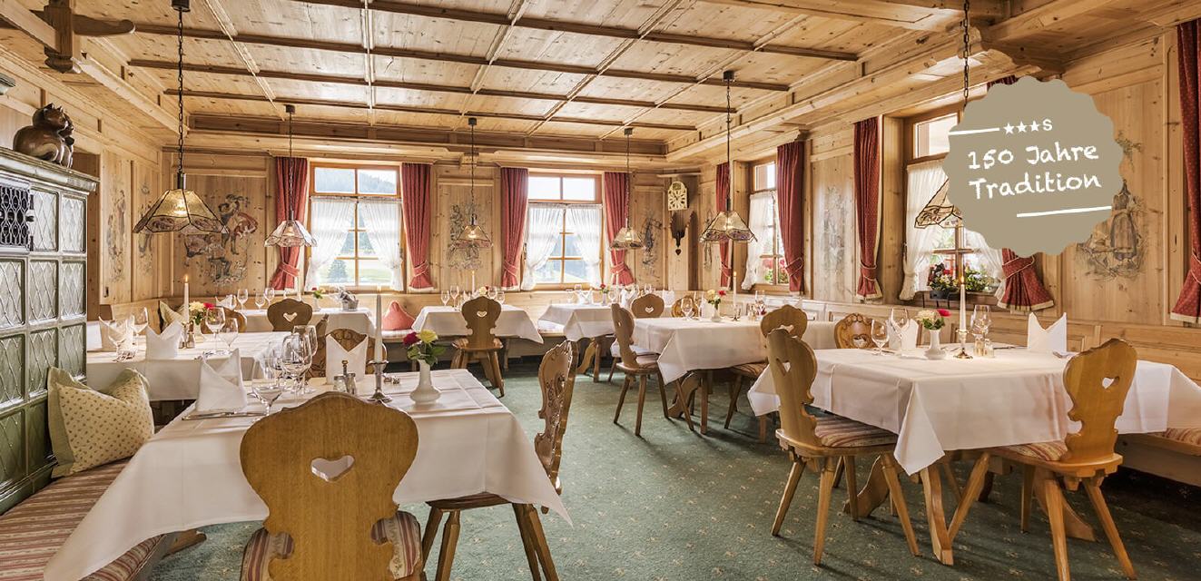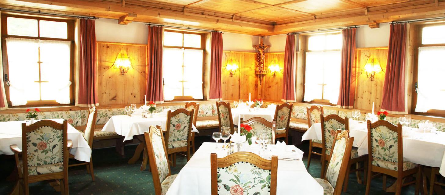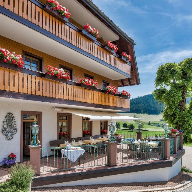 Behaglich, hell und sonnig ist das Restaurant der Mittelpunkt unseres Hauses. Es ist mit viel Holz liebevoll und sehr gemütlich eingerichtet. Durch den Kachelofen und die holzgetäfelten Wände entsteht eine wohltuende, heimelige Schwarzwaldstimmung. Angefangen beim reichhaltigen Frühstücksbuffet bis hin zum abendlichen Menü werden Sie in unserem Restaurant von Frau Eiche und Frau Wehrle mit Ihrem Serviceteam herzlich umsorgt. Unser à la Carte Restaurant ist von Dienstag bis Sonntag ganztägig geöffnet: 11:30 - 14:00 Uhr Mittagservice, 14:00 - 17:30 Uhr hausgemachte Kuchen, Eisspezialitäten und schmackhafte Vesper, 17:30 - 20:30 Uhr Abendservice, ab 20.30 Uhr kleine Abendkarte mit ausgewählten Gerichten. Ihre Tischreservation nehmen wir gerne telefonisch unter der Telefonnummer +49-7669-91020 entgegen. Montags ist unser Restaurant nur für Hotelgäste geöffnet.