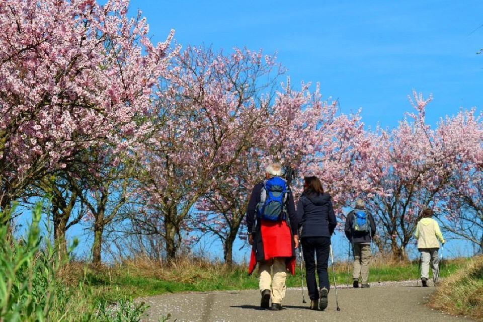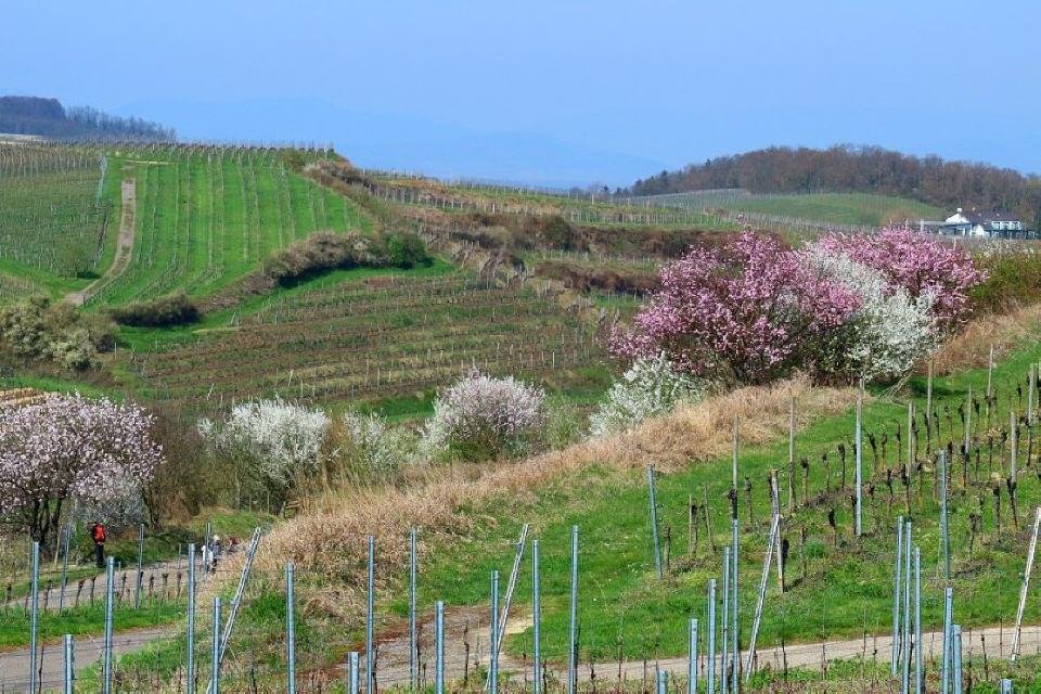 Zu den ersten Blühern zählen die Mandelbäume, die in und rundherum um die Winzergemeinde besonders häufig stehen und die Landschaft mit ihren rosafarbenen Blüten mit zahlreichen Farbtupfern versehen. Wer die Mandelblüte von Mallorca kennt, sollte sie sich hier zwischen Schwarzwald und Vogesen mal anschauen. Immer im März setzen rosa und weiß blühende Büsche und Bäume der Landschaft herrliche Farbkleckse auf. Mit den Mandelbäumen sind überall in den Weinbergen Traubenhyazinthe, Stiefmütterchen, Veilchen sowie zahlreiche weitere Frühlingsboten zu sehen.