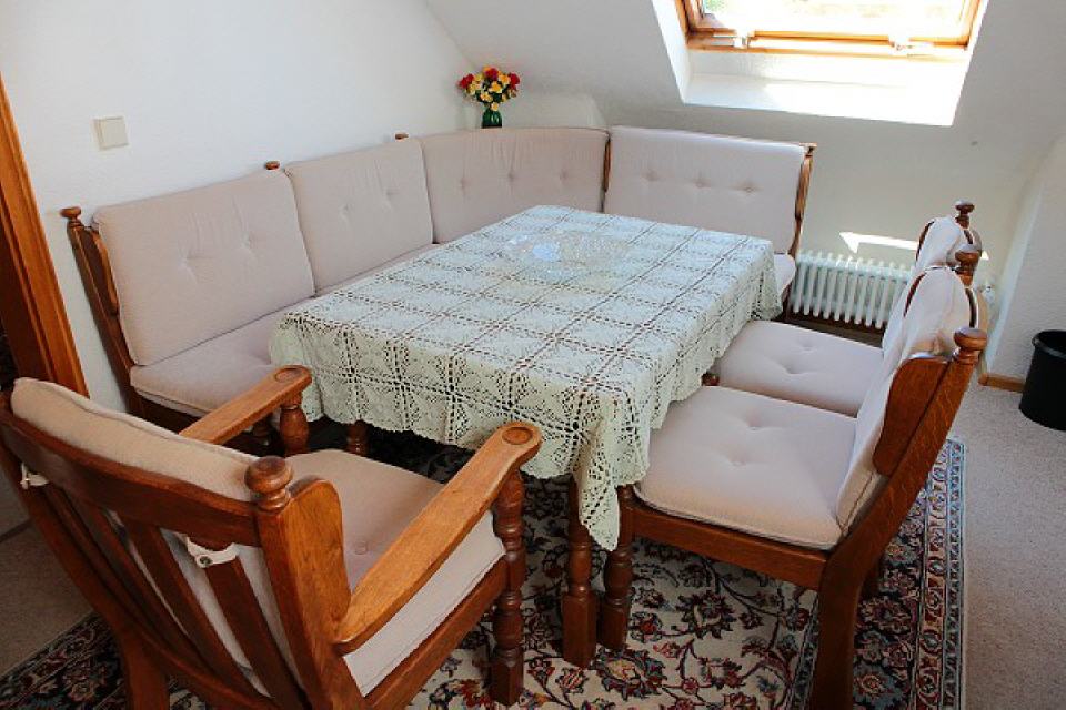 Die Ferienwohnung verfügt über ein großes, gemütlich eingerichtetes Wohnzimmer mit Sat-TV und Radio, einem bequemen, großen Sofa, das als zusätzlicher Schlafplatz für zwei Personen genutzt werden kann (2×2 m).