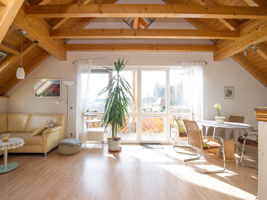 - Wohn-/Esszimmer in behaglicher, offener Holzbauweise