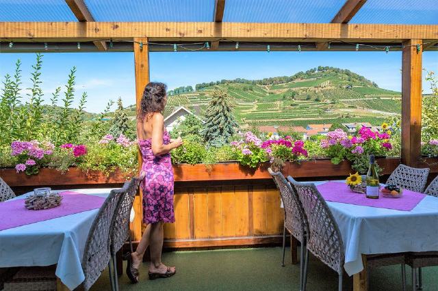 Entspannen Sie in einer schönen Natur auf unserem Winzerhof in ruhiger Einzellage, umgeben von Reben. Lassen Sie sich von unserem Frühstücksbuffet auf der überdachten Terrasse mit faszinierender Aussicht verwöhnen. In unseren behaglichen Gästezimmern mit TV und Panoramablick oder in unserer Ferienwohnung beginnt Ihr Urlaub gleich von Anfang an. Bild antippen!