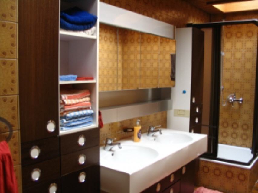 Bad mit Doppelwaschbecken, WC, Dusche und Badewanne