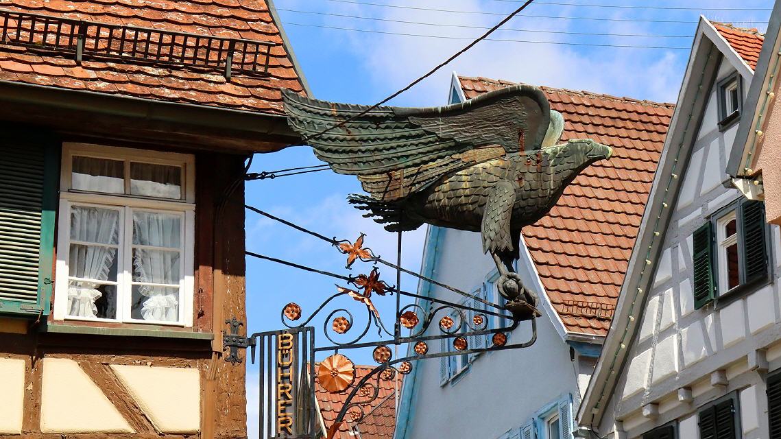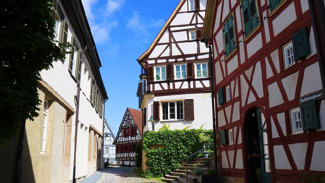 Die Fachwerkbauweise ist typisch für das 15. Jahrhundert, vor allem die Verblattungen (zwei miteinander zu verbindende Balken werden beide so ausgeschnitten, dass sie plan übereinander zu liegen kommen) sowie die starken Geschossvorkragungen. Diese sind auch beim Gebäude Stuttgarter Straße 22 zu sehen (linker Teil des Gebäudes). Wohl seit Beginn des Deutschen Kaiserreiches 1871 gab es in der Stuttgarter Straße 18 die Gaststätte „Zum Deutschen Kaiser“, die bis 1989 bestand. 1990 wurde das Gebäude renoviert und dabei nach alten Befunden die originale Bemalung des Fachwerks in Ocker mit Schmuckstrichen an den Rändern der Gefache wiederhergestellt. Bei Grabungen im Keller des Gebäudes entdeckte man sogenannte Nachgeburtsbestattungen. Vom Mittelalter bis ins 19. Jahrhundert war es ein verbreiteter Brauch, die Plazenta in Töpfen im Keller zu vergraben, um das neugeborene Kind vor bösen Einflüssen zu schützen. Ähnliche Funde sind aus der näheren Umgebung, z.B. aus Sindelfingen, aber auch aus dem Heilbronner und Ludwigsburger Raum bekannt.