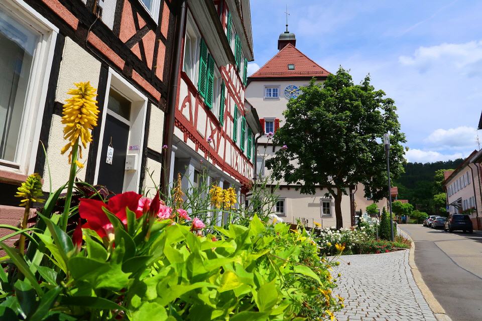 - Kloster Maria Reuthin. Malerisch liegt das einstige Frauenkloster direkt am klaren Flüsschen Nagold. Im Mittelalter lebten hier Dominikanerinnen. Was die vornehmen Adelstöchter als Mitgift mitbrachten, sorgte über die Jahrhunderte für den Reichtum des Klosters. Nach der Reformation elen einige der Klostergebäude den Zeitläufen zum Opfer. Aber was sich bis heute erhalten hat, ist eindrucksvoll genug. Der mächtige Fruchtkasten, in dem die Abgaben gesammelt und Vorräte verwahrt wurden, zeugt immer noch vom Wohlstand.