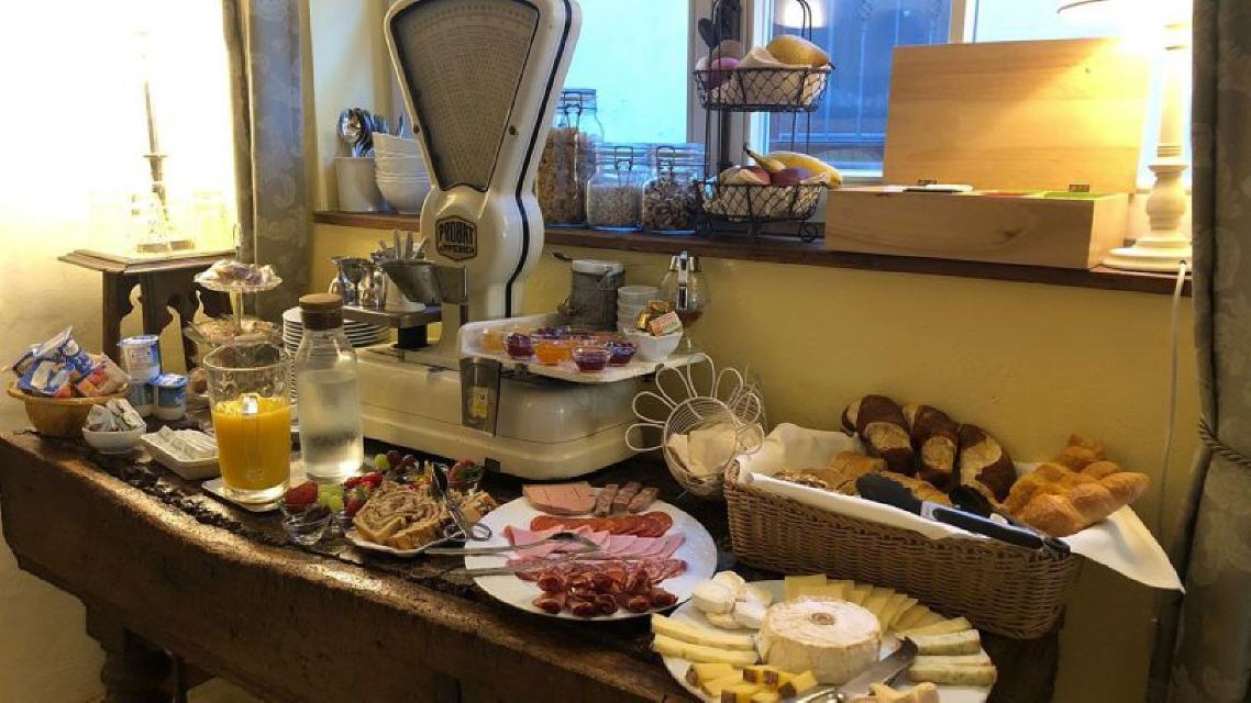 In unseren romantisch eingerichteten Zimmern fühlen Sie sich auf Anhieb wohl – hier können Sie in Ruhe neue Kraft tanken. Morgens richten wir Ihnen im Frühstücksraum ein Buffet mit allerlei französischen Leckereien an. Nehmen Sie an unserem großen Gemeinschaftstisch, an einem unserer kleinen Tische oder bei schönem Wetter auf unserer Terrasse Platz und schlemmen Sie nach Herzenslust.