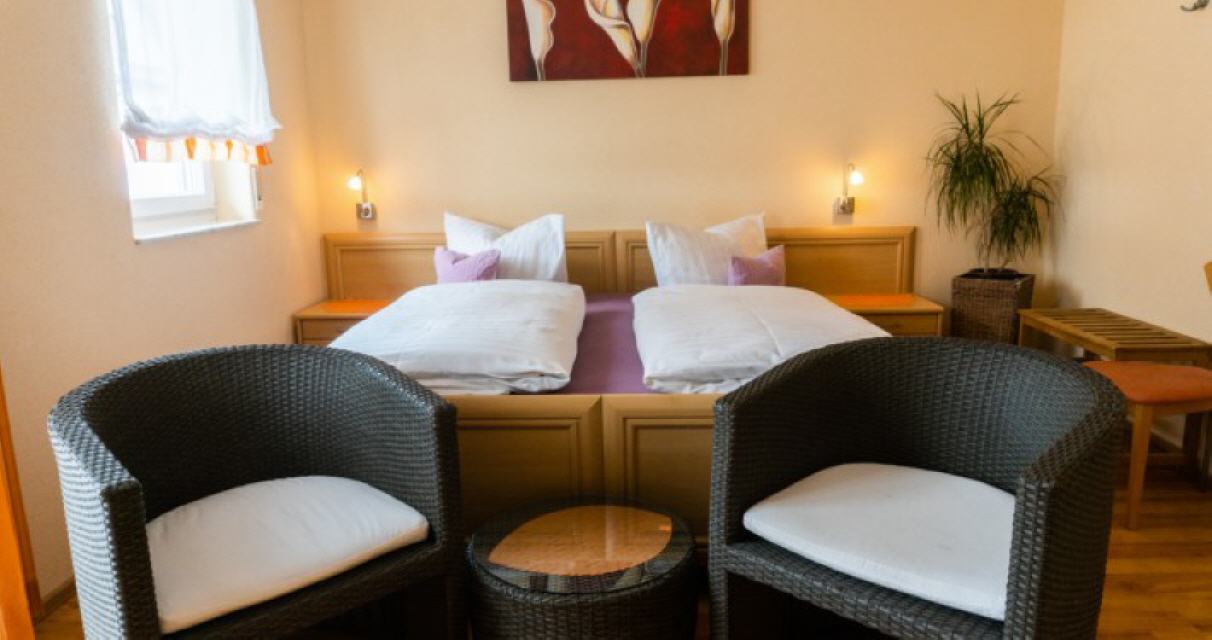 - Doppelzimmer, Belegung max. 2 Personen. Unsere DZ im Stammhaus bieten Bad mit Dusche, Schreibtisch, Flat-Screen-TV, Preis ab 55,80 Euro pro Nacht.
