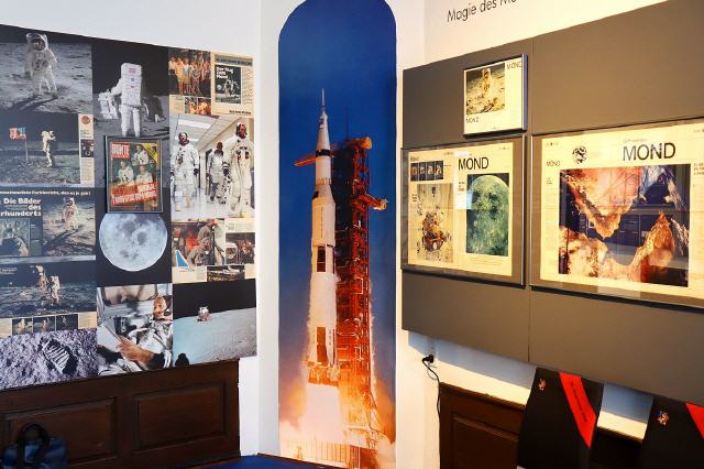 Magie des Mondes. Der Blick zum Mond und die Bilder vom Mond begleiten die Menschen seit jeher. Sie spiegeln sich im Brauchtum, in Literatur, Musik und auf Bildern. Mit der Mondlandung kamen gar noch die fotografischen Aufnahmen hinzu, samt Aussicht vom Mond auf die Erde. Eine Installation im Haus Löwenberg erlaubt uns, über den Mondboden gehend, den Blick auf die Sterne, auf Mondgeschichten und Mondbilder. Sie werden dem Thema gemäß ins magische Licht gerückt. Eine Auswahl der Beteiligten verheißt Besonderes: Quint Buchholz, Otmar Alt, NASA, Kveta Pacovská, Dietmar Mahler.