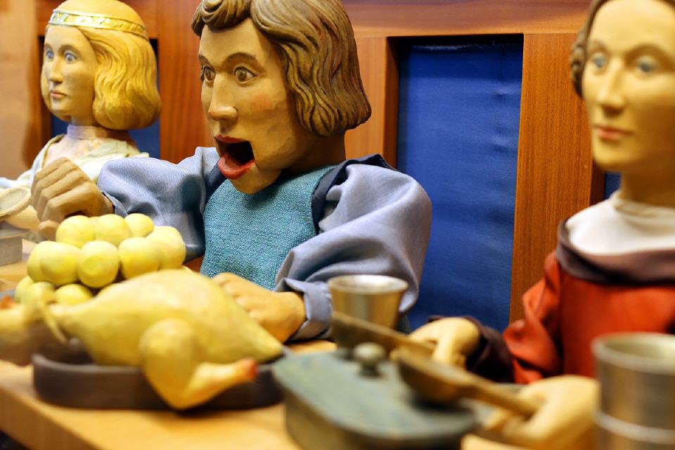 Im Treppenaufgang zum Obergeschoss versammelt die originale Figur des Ritters vom Marktbrunnen zudem künstlerische Zeugnisse um sich, die von der Fülle seiner Erlebnisse als über vierhunderjähriges Statussymbol berichtet.