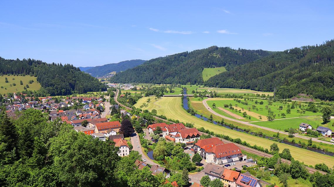 Etwas unterhalb des Zusammenflusses der Gutach in die Kinzig liegt zu Füßen der Burg Husen das Städtchen Hausach. Es wird umrankt von den gewaltigen Bergmassiven des Brandenkopfes (947 m) und des Farrenkopfes (789 m). Hausach liegt in der Ferienregion Kinzigtal im Ortenaukreis (Ortenau) im mittleren Schwarzwald.