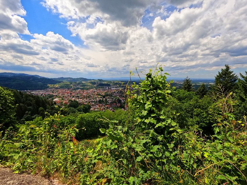 Von Westen kommend, befindet sich die mächtige Burgruine Schauenburg hoch über Oberkirch auf der linken Seite des Eingangs zum Renchtal. Von der Stadt aus ist der Weg dorthin gut ausgeschildert. Unterhalb der Burgruine sind mehrere Parkplätze.
