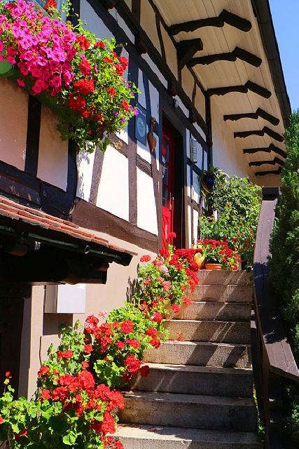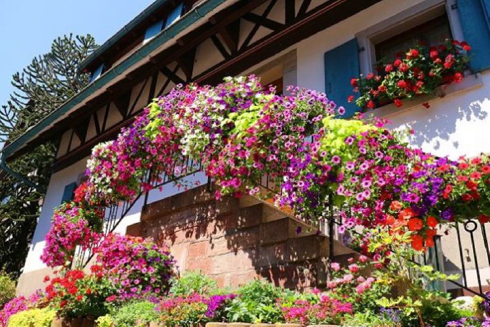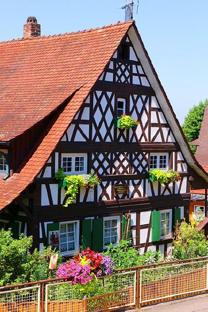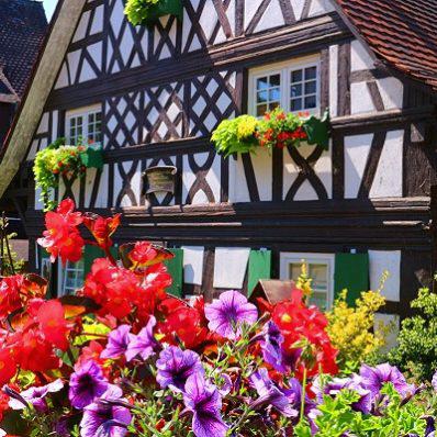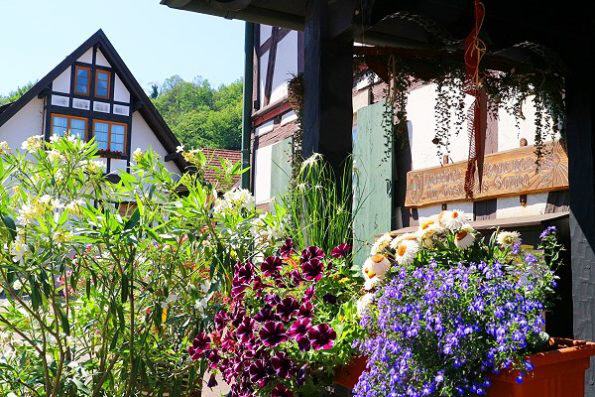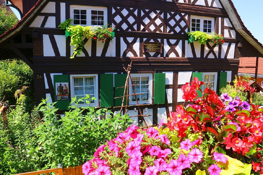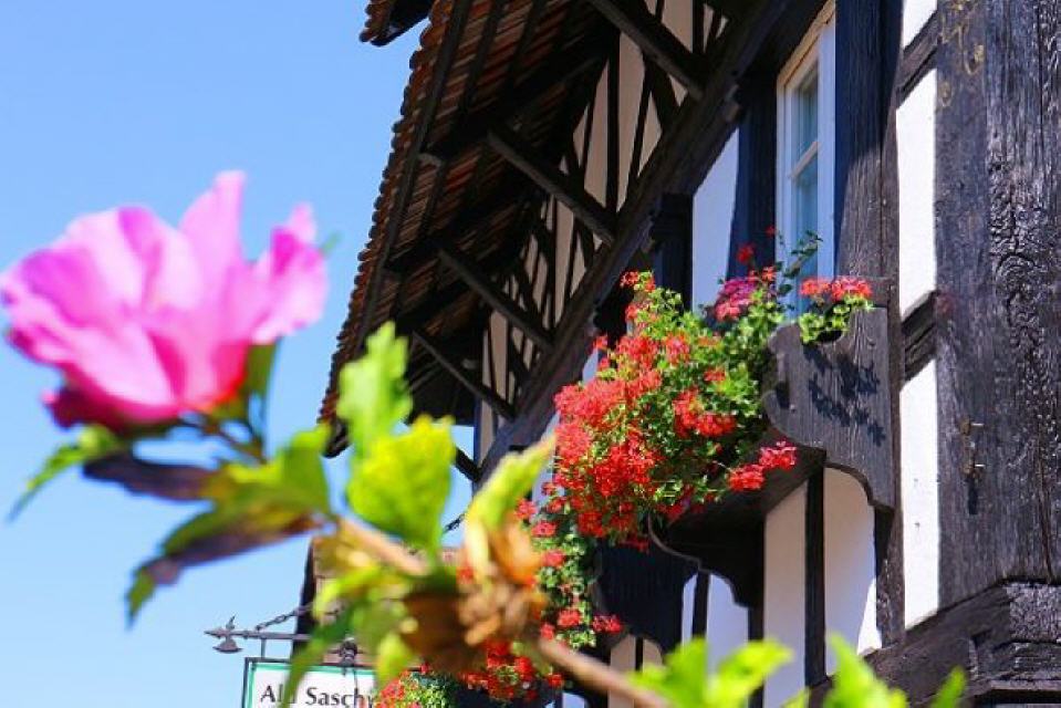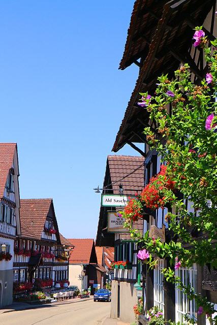 Doch nicht nur ihre Fenster schmücken die Sasbachwaldener mit Blumen, mitten im Dorf finden sich wunderschöne Vorgärten, in denen es in allen Farben blüht. Bei der Blütenpalette handelt es sich um blaue und weiße Petunien, rote und rosa Geranien und leuchtendgelbe Pantoffelblumen. Es gibt sogar eigens eine Blumenkombination, die den Namen “Saschwaller Mischung” trägt.