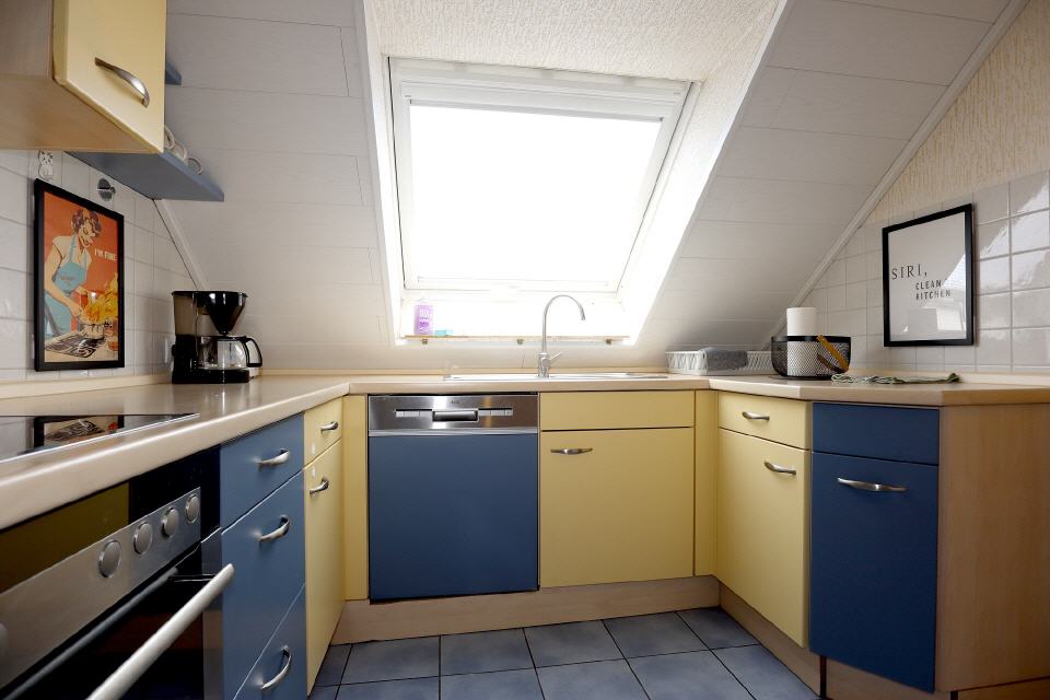 - Küche: Kühlschrank, Herd, Geschirrspüler, Esstisch, Gefrierfach, Kaffeemaschine, Geschirr und Besteck, Küche, Wasserkocher, Küchenzeile, Toaster, Backofen