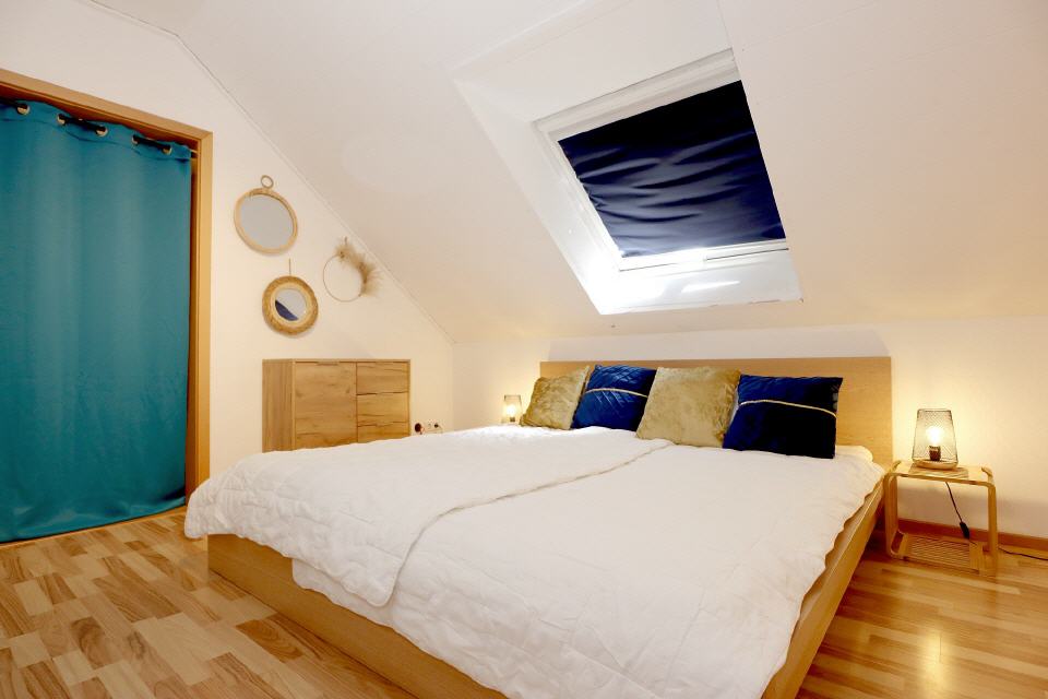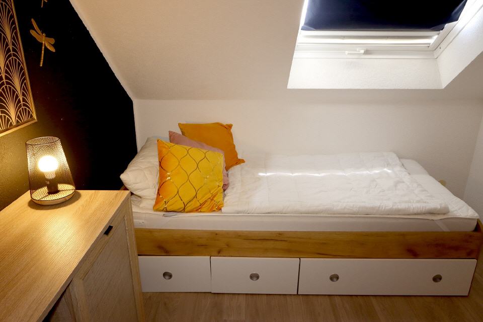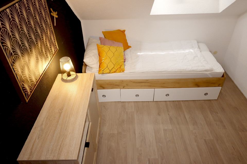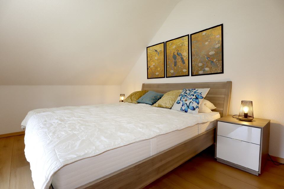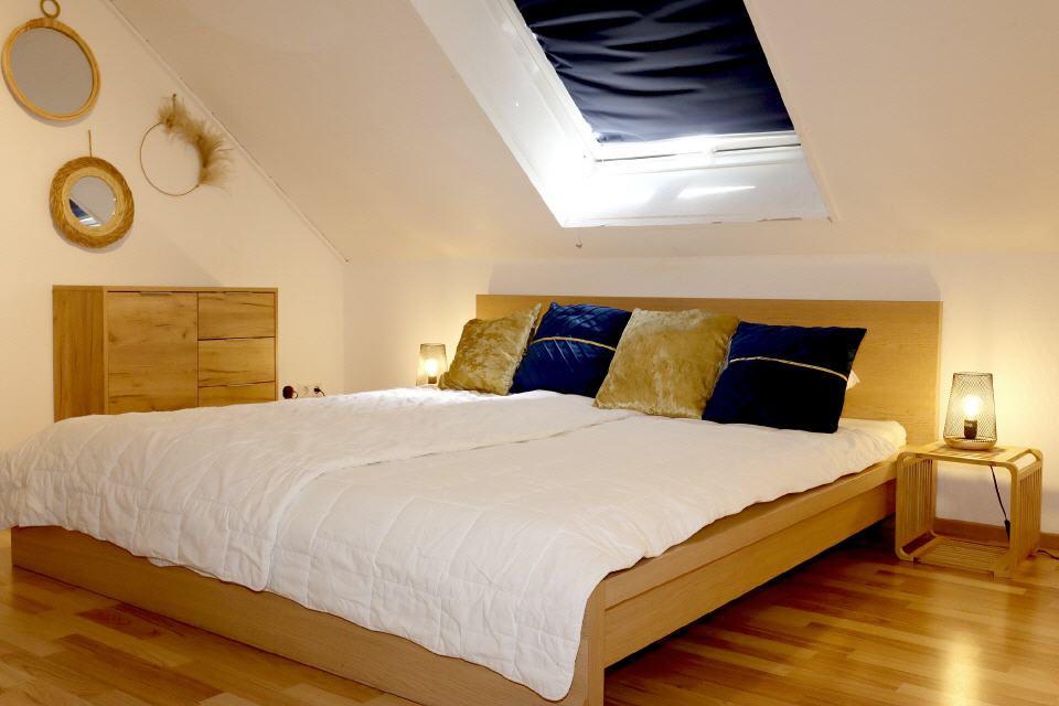 - Schlafbereich: Bettwäsche, Doppelbett, Schlafsofa, Kleiderschrank