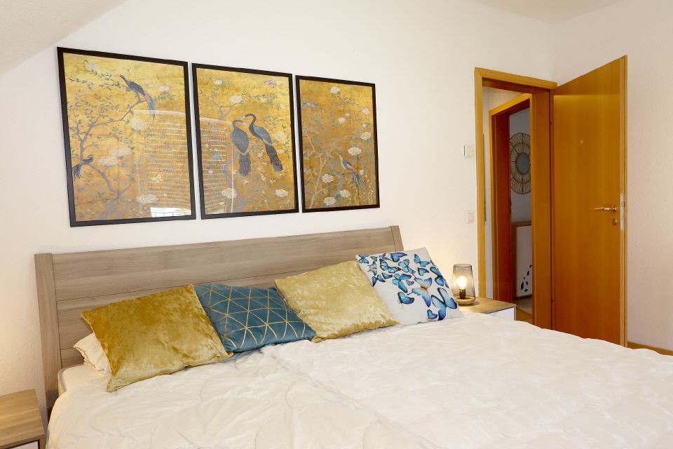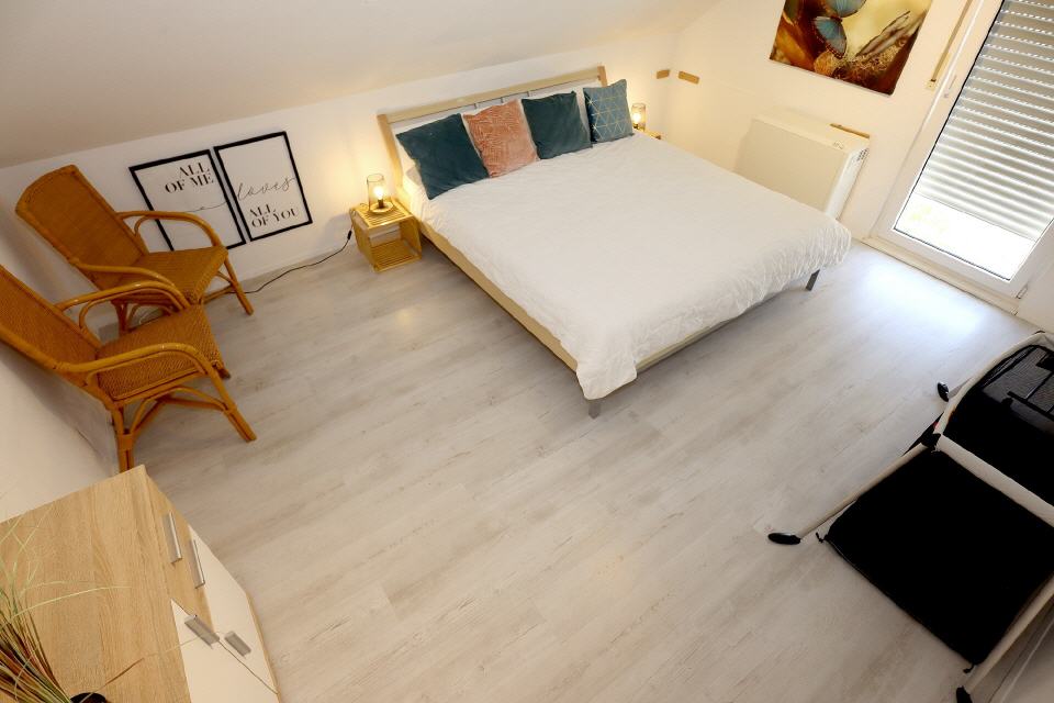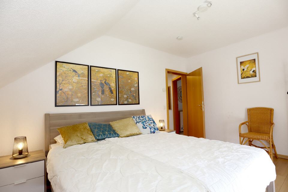 Unsere stilvoll eingerichtete Wohnung bietet Platz für bis zu 8 Personen und sorgt mit einem modernen Badezimmer und einem zusätzlichen Gäste-WC für besonderen Komfort, auch bei größeren Gruppen. Drei gemütliche Schlafzimmer mit Doppelbetten laden zum Träumen ein, wobei eines der Schlafzimmer mit einem zusätzlichen Raum verbunden ist, in dem sich ein Einzelbett befindet – ideal für Familien mit Kindern. Im einladenden Wohnzimmer finden Sie ein weiteres Schlafsofa, das zusätzlichen Platz für Entspannung und erholsame Nächte bietet.
