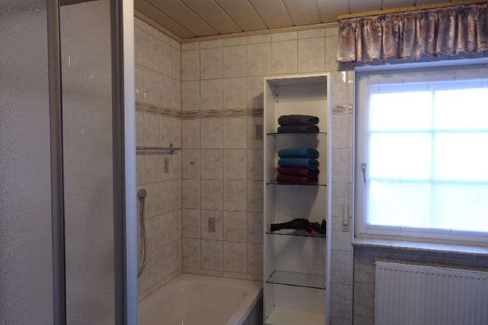 Obergeschoss: 2 Schlafzimmer, Wohnküche, großes Wohnzimmer, SAT-TV Flachbildschirm, WLAN, Dusche, WC, separates WC, großer überdachter Balkon mit Gartenmöbeln. Zur Begrüßung erwartet Sie eine Flasche Alde Gott Wein.Keine Haustiere. Belegung 1-4 Personen. Nach dem Eingang befindet sich rechts die Küche, dann ein Schlafzimmer, danach ein separates WC, ein helles geräümiges Bad mit Dusche und WC und Dachfenster, danach befinden Sie sich im zweiten Schlafzimmer, das ebenfalls großzügigen Platz bietet. Ggegenüber der Küche liegt das gemütliche große Wohnzimmer mit einer großen Eßecke und einer Couch, von dort erreicht man auch den bezaubernden Balkon mit Gartenmöbel.